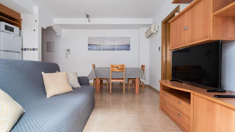 Das Excelente apartamento en 2ª línea de playa by Hometels ist eine klimatisierte Ferienwohnung, die ausgestattet ist mit 2 Schlafzimmern, einem Flachbild-TV sowie einer Küche, die mit einem Kühlschrank und einem Ofen ergänzt wird. Die Unterkunft bietet zudem Handtücher und Bettwäsche für die Gäste.