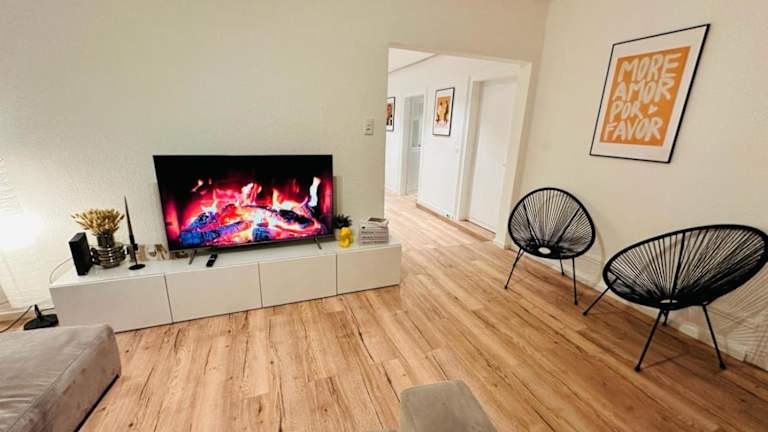 Die Ferienwohnung besteht aus 3 Schlafzimmern und einem Wohnzimmer. Sie bietet eine voll ausgestattete Küche mit Kühlschrank und Kaffeemaschine sowie ein Badezimmer mit Badewanne und Haartrockner. Handtücher und Bettwäsche sind ebenfalls vorhanden und die Wohnung ist klimatisiert.