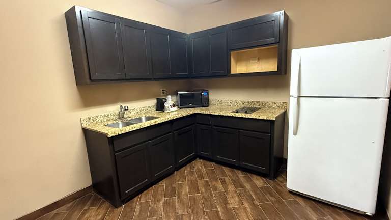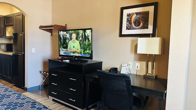Die Zimmer im Executive Inn & Suites sind ausgestattet mit einer Küchenzeile, die eine Mikrowelle, einen grossen Kühlschrank sowie ein Kochfeld umfasst. Zudem gibt es Kabel-TV, einen Schreibtisch sowie weitere Annehmlichkeiten für einen angenehmen Aufenthalt.