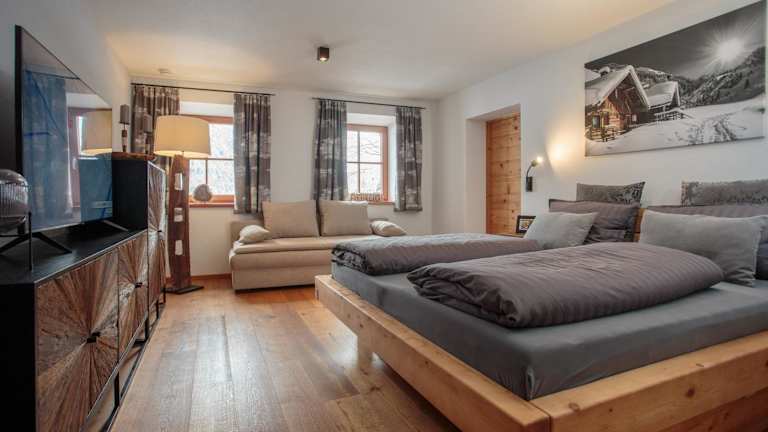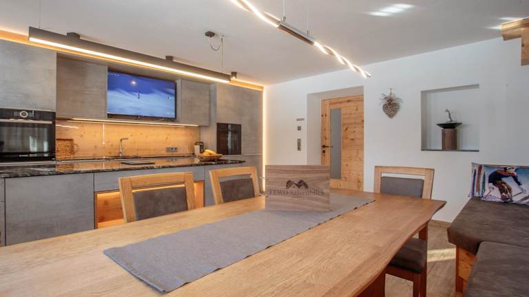 Die exklusive Ferienwohnung bietet eine Wohnfläche von 103 qm mit Gartenblick und zeichnet sich durch eine heimelige Atmosphäre aus. Sie verfügt über eine Veranda und einen Privatparkplatz sowie einen gratis Skibus, der direkt ab der Wohnung abfährt.