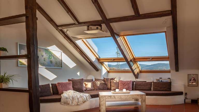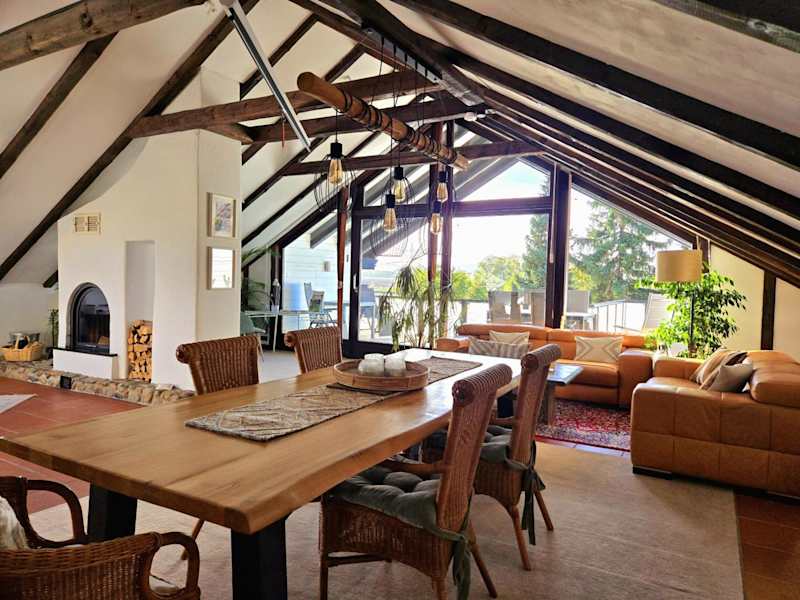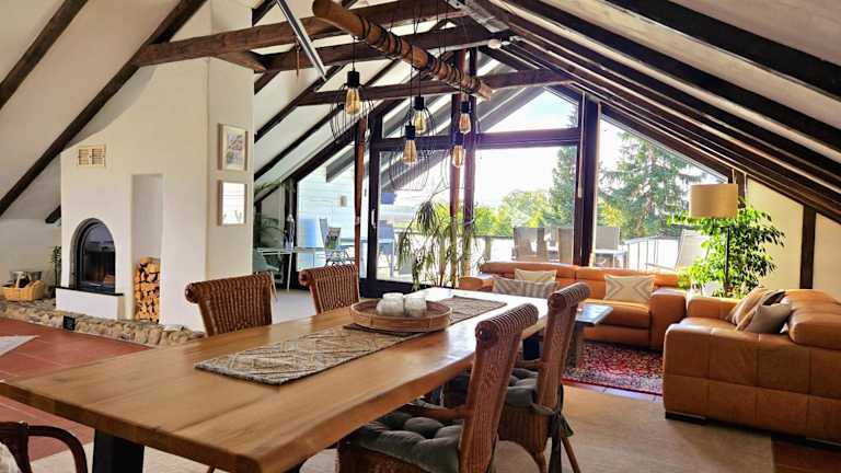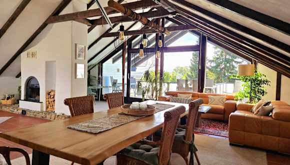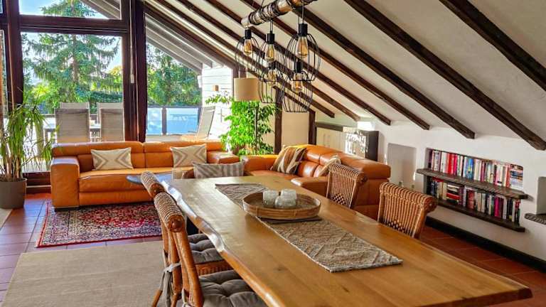 Die exklusive Dachgeschosswohnung mit Gartenblick bietet eine Terrasse, Grillmöglichkeiten und einen beeindruckenden Bergblick. Kostenloses Wifi steht in der ganzen Unterkunft zur Verfügung.