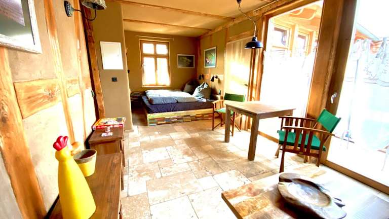 Die Ferienwohnung bietet ein Schlafzimmer, ein Wohnzimmer, einen Flachbild-TV sowie eine gut ausgestattete Küche mit Kühlschrank und Mikrowelle. Das Badezimmer verfügt über eine Dusche. Handtücher und Bettwäsche werden bereitgestellt.