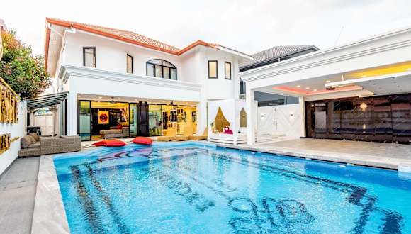 Die Exquisite Pool Villa K - Pattaya 6BD Pool Villa ist gelegen in Pattaya South, 2,2 km vom Strand Pattaya Beach entfernt. Die Villa befindet sich in der Nähe des Crystal Bay Golf Club und des Emerald Golf Resort, welches beide in einer Distanz von 46 km bzw. 49 km liegen. Der nächstgelegene Flughafen, U-Tapao, ist 46 km entfernt.