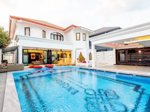 Die Unterkunft Exquisite Pool Villa K - Pattaya 6BD Pool Villa bietet eine heimelige Atmosphäre und ist mit einem eigenen Pool ausgestattet. Die Villa verfügt über eine Klimaanlage, einen Flachbild-TV und eine voll ausgestattete Küche. Die Unterkunft bietet kostenfreies WLAN und eine kostenfreie Privater Parkiermöglichkeit. Im Wellnessbereich stehen eine Sauna und ein Whirlpool zur Verfügung.