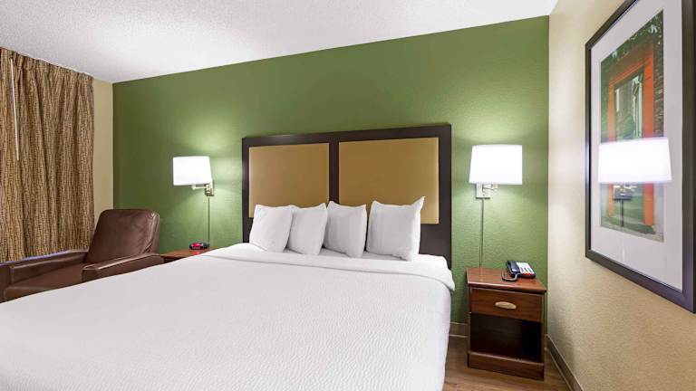 Die Zimmer im Extended Stay America sind mit einer voll ausgestatteten Küchenzeile ausgestattet, ideal für Selbstversorger. Ein wöchentlicher Reinigungsservice ist im Preis inbegriffen, wobei ein zusätzlicher täglicher Reinigungsservice gegen Aufpreis geboten wird. Es werden Handtücher und Bettwäsche bereitgestellt, die an der Rezeption gewechselt werden können.