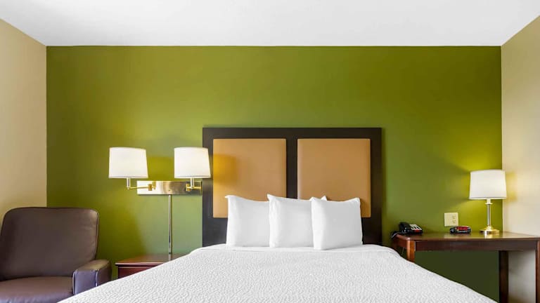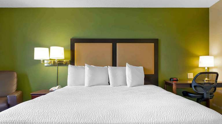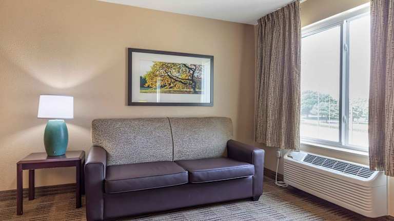 Die Zimmer im Extended Stay America sind mit voll ausgestatteten Küchen inklusive Kochfeld, Mikrowelle und Kühlschrank ausgestattet. Hochwertige Bettwäsche, zusätzliche Kissen sowie die Möglichkeit, Handtücher und Bettwäsche an der Rezeption zu wechseln, sorgen für eine angenehme Bequemlichkeit während des Aufenthaltes.