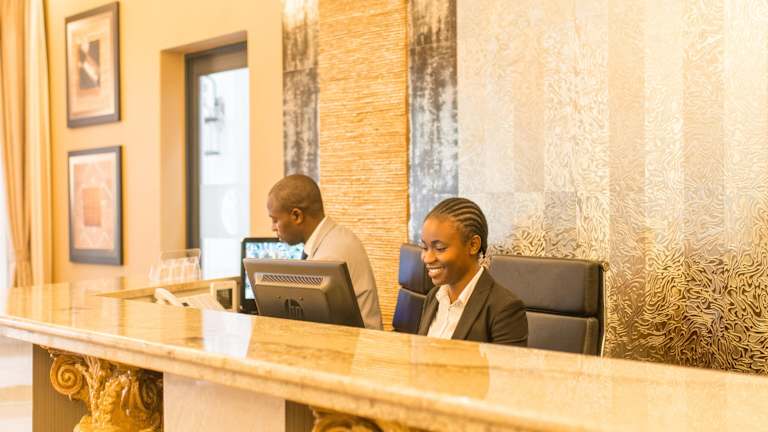 Die Unterkunft verfügt über ein Restaurant, das afrikanische, amerikanische und Meeresfrüchte-basierte Küche serviert. Auf Anfrage sind auch vegetarische, milchfreie und halal-zubereitete Speisen erhältlich. Die Bar lädt zum Verweilen bei einem Drink ein. Zudem werden diverse Dienstleistungen wie Essenslieferung in die Unterkunft angeboten.