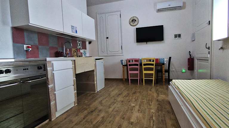 Die Ferienwohnung besteht aus einem Schlafzimmer, einem Wohnzimmer und einer voll ausgestatteten Küche mit Kühlschrank und Kaffeemaschine. Die beiden Badezimmer sind mit einem Bidet und einer Dusche ausgestattet. Bettwäsche und Handtücher werden bereitgestellt. Die Unterkunft ist klimatisiert und bietet Platz für bis zu 4 Gäste.