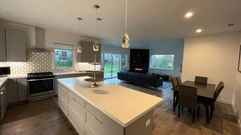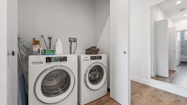 Eine eigene, voll ausgestattete Küche steht den Gästen zur Verfügung und bietet Annehmlichkeiten wie Kühlschrank, Geschirrspüler, Waschmaschine, Ofen und Mikrowelle. Handtücher und Bettwäsche werden bereitgestellt.