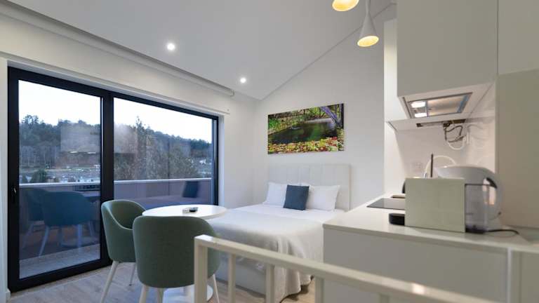 Die Wohneinheiten sind mit einer voll ausgestatteten Küchenzeile mit Kühlschrank, Herdplatte, Ofen, Mikrowelle, Kaffeemaschine und Wasserkocher ausgestattet. Zudem bieten die Zimmer einen Essbereich, einen Flachbild-TV mit Kabelkanälen sowie ein eigenes Badezimmer mit Dusche und Haartrockner.