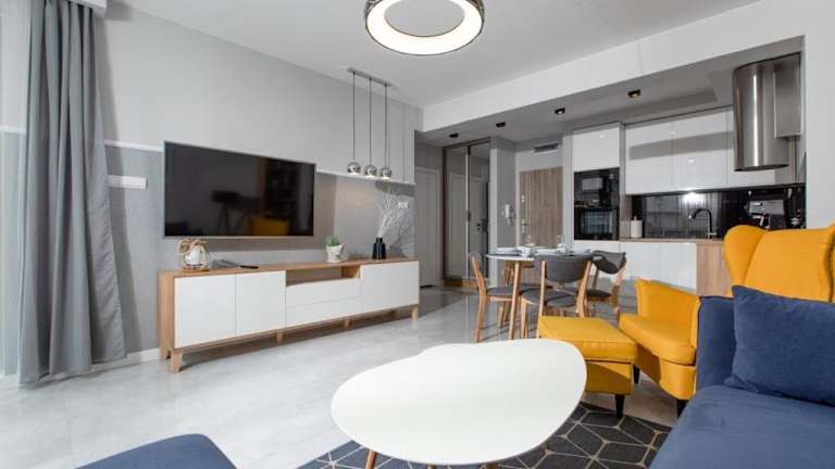 Die Ferienwohnung verfügt über 1 Schlafzimmer, eine Küchenzeile mit Kühlschrank und Geschirrspüler, einen Flachbild-TV sowie einen Sitzbereich. Das Badezimmer ist mit einer Dusche ausgestattet. Handtücher und Bettwäsche werden bereitgestellt.