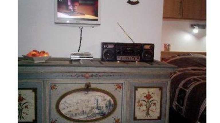Die Ferienwohnung ist versehen mit einem Wohnzimmer und einer voll ausgestatteten Küchenzeile, die einen Kühlschrank und einen Geschirrspüler umfasst. Zur weiteren Ausstattung gehören ein TV, ein DVD-Player sowie ein CD-Player.