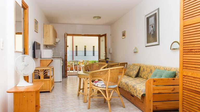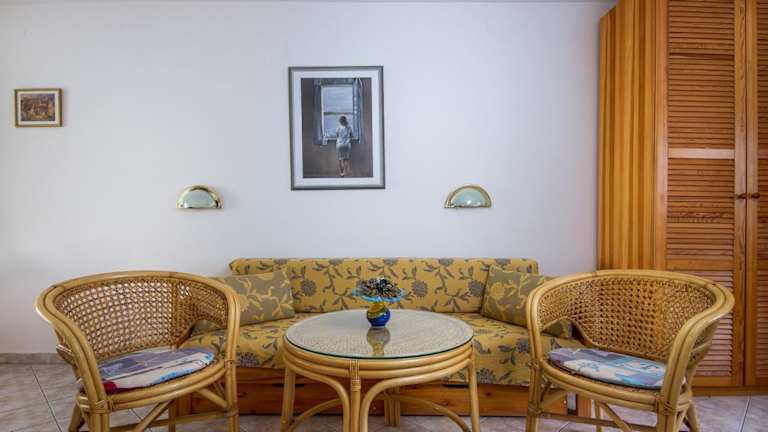 Die Ferienwohnung verfügt über einen Satelliten Flachbild-TV, Klimaanlage und ein Wohnzimmer. Die Küchenzeile ist ausgestattet mit einem Kühlschrank, einer Mikrowelle, einer Herdplatte und einem Wasserkocher. Ein Grill steht zur Verfügung.