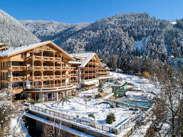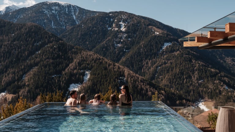 Luxus Familienhotel in den Südtiroler Dolomiten Das Kinderhotel Sonnwies in Lüsen bei Brixen ist Familienhotel, Biobauernhof und Wellnesshotel in einem. In seinem Angebot setzt das Sonnwies auf Natur: Mit allergenfreien Zimmern, Suiten und Chalet´s, regionalen und selbst angebauten Lebensmitteln aus dem eigenen Bio-Hof, Kinderanimation im Einklang mit der Südtiroler Bergnatur , Wasserspaß in den Pools und im Aquapark, sowie im Winter eigenem Skilift, Skischule u.v.m. Das Highlight: Die neuen Mountain Villen mit privatem Infinity Pool!