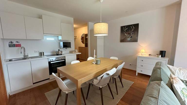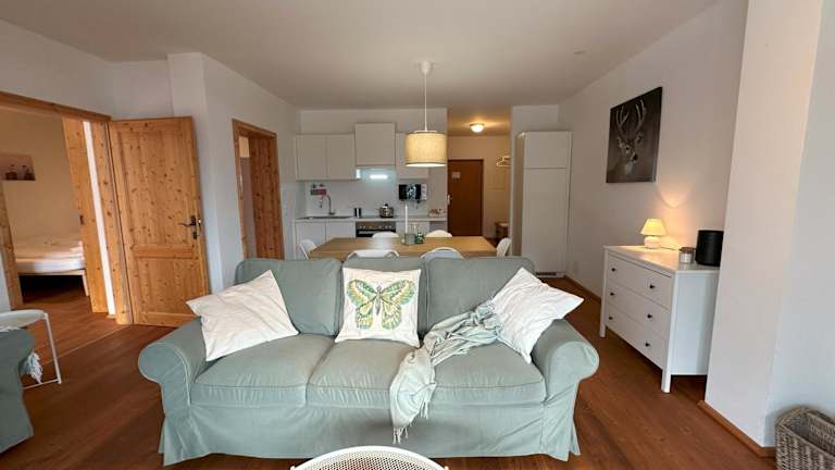 Das Family Apartment HIRSCH ist eine einladende Ferienwohnung, die durch eine Veranda, ein gemütliches Wohnzimmer und eine gut ausgestattete Küche überzeugt. Die Unterkunft bietet Platz für Familien und Gruppenausflüge und ist für Nichtraucher ausgestattet.