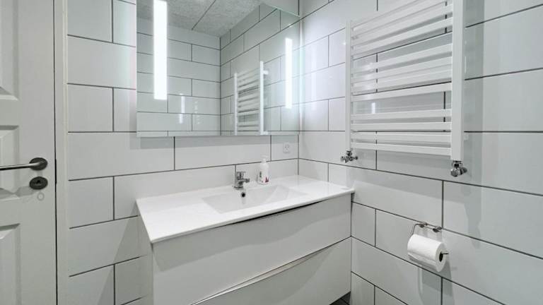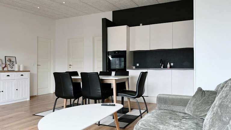 Die Ferienwohnung umfasst zwei Schlafzimmer, eine vollständig ausgestattete Küche mit Kühlschrank und Geschirrspüler, einen Sitzbereich sowie zwei Badezimmer mit Badewanne oder Dusche. Ein Flachbild-TV ist ebenfalls vorhanden.