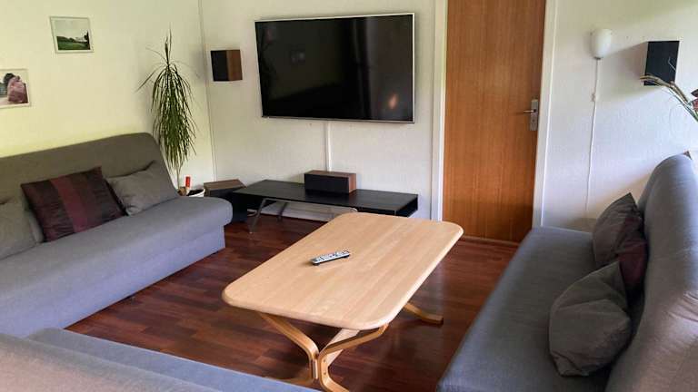 Die Ferienwohnung umfasst 3 Schlafzimmer, ein Wohnzimmer mit einem Flachbild-TV, eine gut ausgestattete Küche mit Kühlschrank und Geschirrspüler sowie ein Badezimmer mit Dusche. Handtücher und Bettwäsche sind ebenfalls vorhanden. Die Terrasse bietet einen schönen Blick auf den Garten.