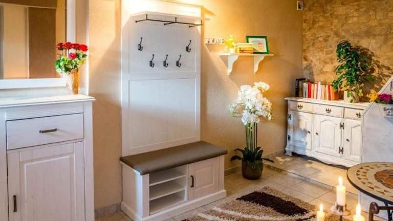 Die Unterkunft beinhaltet eine gut ausgestattete Küche mit Kühlschrank, Geschirrspüler und Ofen, die für eine Selbstversorgung verwendet werden kann.