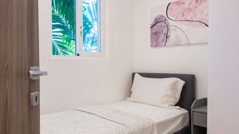 Die Ferienwohnung besteht aus 3 Schlafzimmern und 3 Badezimmern und ist bestens ausgestattet mit Bettwäsche und Handtüchern. Es sind ein Flachbild-TV, ein Essbereich sowie eine voll ausgestattete Küche vorhanden. Zudem gibt es einen Balkon mit Blick auf den Garten. Auf Wunsch können zusätzliche Handtücher und Bettwäsche gegen Aufpreis bereitgestellt werden.