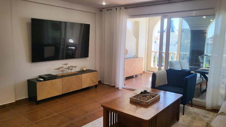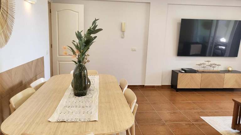 Die Ferienwohnung ist klimatisiert und besteht aus 3 Schlafzimmern, einem Wohnzimmer sowie einer voll ausgestatteten Küche mit Kühlschrank und Kaffeemaschine. Es stehen 2 Badezimmer mit Dusche und kostenlosen Pflegeprodukten zur Verfügung. Handtücher und Bettwäsche werden bereitgestellt.
