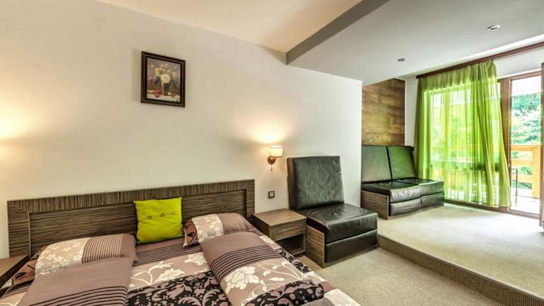 Jedes Zimmer im Family Hotel BOHEMA ist mit Klimaanlage, Kleiderschrank und einer Terrasse mit Blick auf die Berge ausgestattet. Die Zimmer verfügen zudem über ein eigenes Badezimmer, einen Flachbild-TV sowie Bettwäsche und Handtücher. Schallisolierte Zimmer sind ebenfalls vorhanden um den Gästen eine angenehme Nachtruhe zu bieten.
