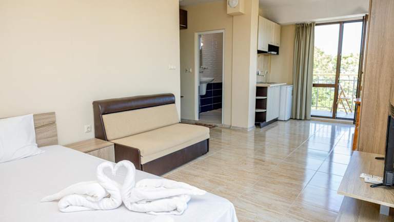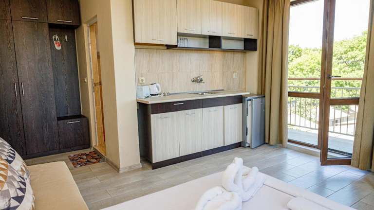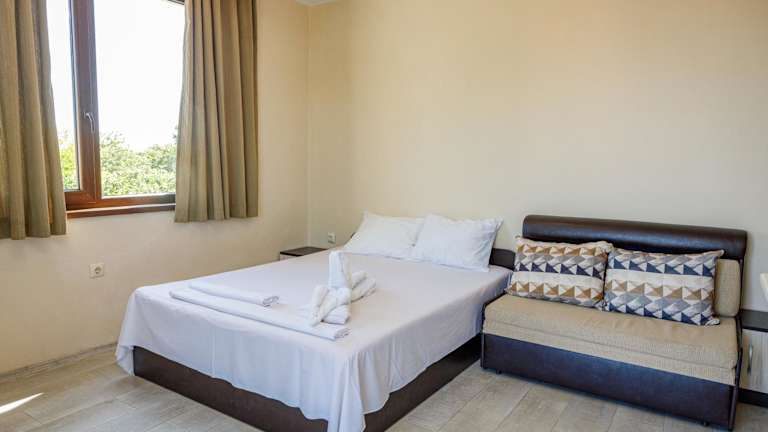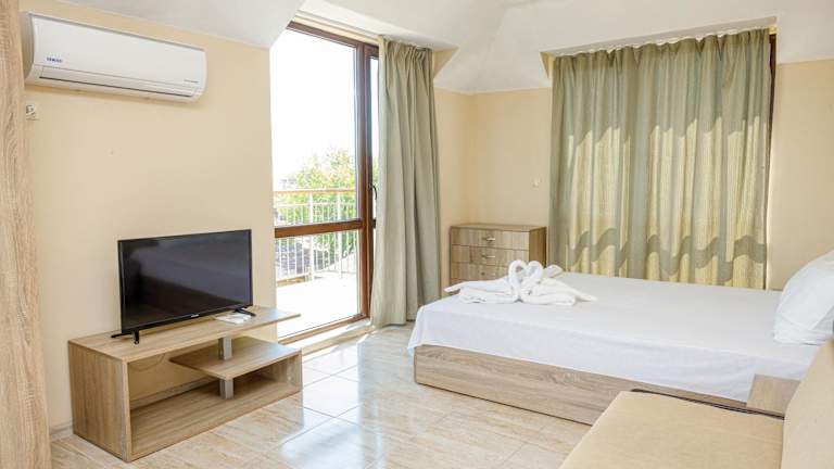 Das Family Hotel Silitur in Ahtopol bietet eine ideale Unterkunft für Familien, die einen entspannten Strandurlaub genießen möchten. Mit kostenfreiem WLAN, Klimaanlage und einem schönen Garten mit Terrasse fühlen Sie sich hier wie zu Hause. Einige der Unterkünfte verfügen über einen Balkon, einen Flachbild-Sat-TV und einen Blu-ray-Player für zusätzlichen Komfort. Darüber hinaus können Sie im Hotel Fahrräder ausleihen, um die Umgebung zu erkunden. Die Lage des Hotels ist ideal, nur 400 m vom Strand Ahtopol entfernt. In der Nähe finden Sie auch andere interessante Orte wie die Gemeinde Tsarevo und die Busbahnhöfe Lozenets und Kiten. Der Flughafen Burgas ist ebenfalls gut erreichbar.