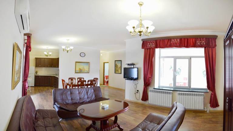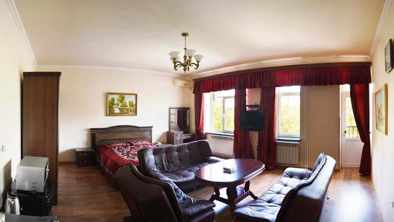 Das Family Hotel befindet sich nur 5 Gehminuten vom Platz der Republik entfernt, was es zu einer idealen Ausgangsbasis macht, um die Stadt Jerewan zu erkunden. In unmittelbarer Nähe finden Sie eine große Auswahl an Restaurants und Cafés, in denen Sie die köstliche europäische Küche genießen können. Das Nationalmuseum und die Kunstgalerie sind nur 300 m entfernt und die beeindruckende Kathedrale Hl. Gregor der Erleuchter erreichen Sie in nur 5 Fahrminuten. Der Flughafen Jerewan ist ebenfalls gut erreichbar und liegt nur 12 km entfernt.