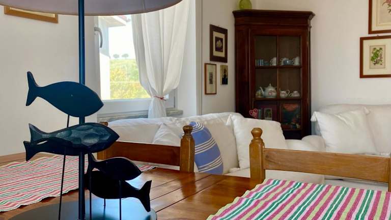 Die Ferienwohnung mit Klimaanlage besteht aus 3 Schlafzimmern, einem Wohnzimmer und einer voll ausgestatteten Küche mit Kühlschrank und Wasserkocher. Es gibt 2 Badezimmer mit Bidet und Dusche, und Handtücher sowie Bettwäsche werden bereitgestellt.