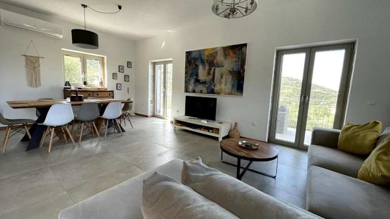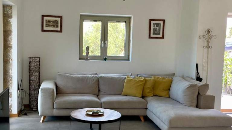 Die Unterkunft liegt in einer ruhigen Umgebung mit Bergblick und ist etwa 1,5 km vom Strand Pantazi entfernt. In der Nähe befinden sich Sehenswürdigkeiten wie die Höhlen von Diros und der Städtische Zugpark von Kalamata.