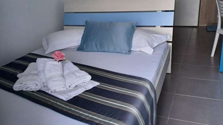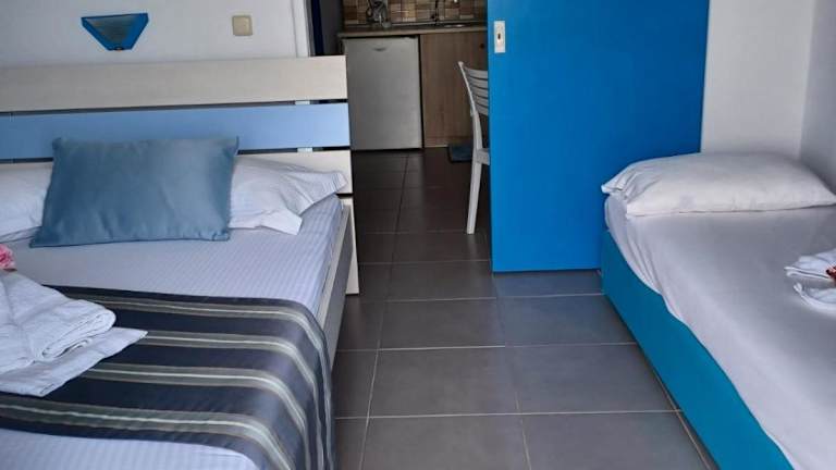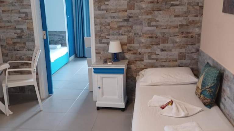 Die klimatisierten Wohneinheiten verfügen über Fliesenböden, ein eigenes Badezimmer, einen Flachbild-TV, einen Kleiderschrank, eine ausgestattete Küchenzeile und eine Terrasse mit Meerblick. Es sind Familienzimmer verfügbar.