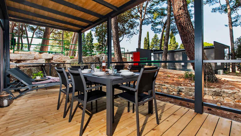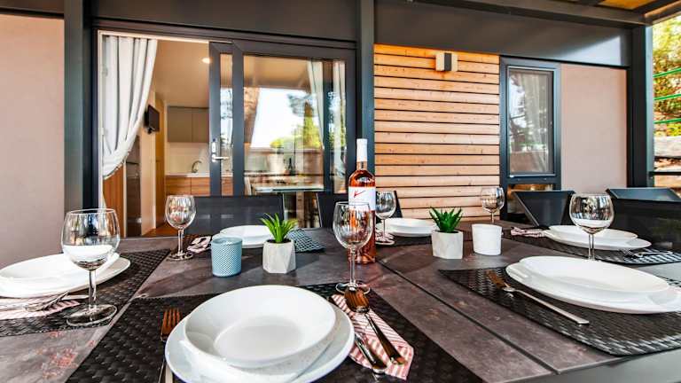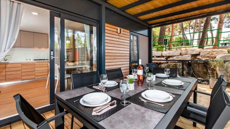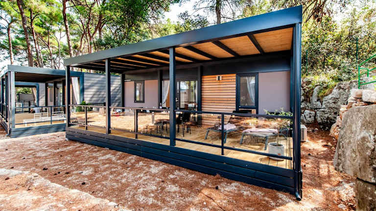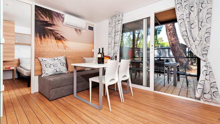 Die mobilen Heime verfügen über eine Veranda oder ein Patio mit Gartenblick, die zum Verweilen einladen. Sie bieten einen hellen Sitzbereich, einen Flachbild-TV sowie eine voll ausgestattete Küche, die mit einem Kühlschrank und einem Geschirrspüler ausgestattet ist. Ein eigenes Badezimmer mit Dusche und Haartrockner sorgt für zusätzlichen Komfort.