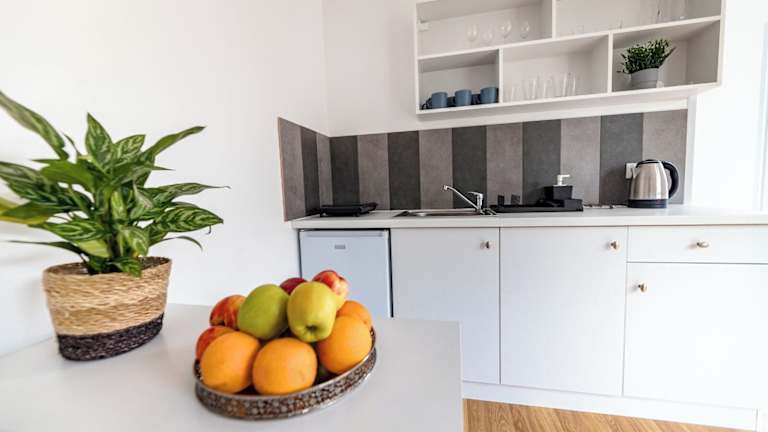 Die Unterkunft verfügt über klimatisierte Zimmer, die mit einer voll ausgestatteten Küchenzeile, einem Flachbild-TV und einem eigenen Badezimmer mit Dusche, kostenlosen Pflegeprodukten und einem Haartrockner ausgestattet sind. Zusätzlich sind ein Kühlschrank, eine Herdplatte, ein Toaster und ein Wasserkocher vorhanden. Die Terrasse lädt zum Entspannen im Freien ein.