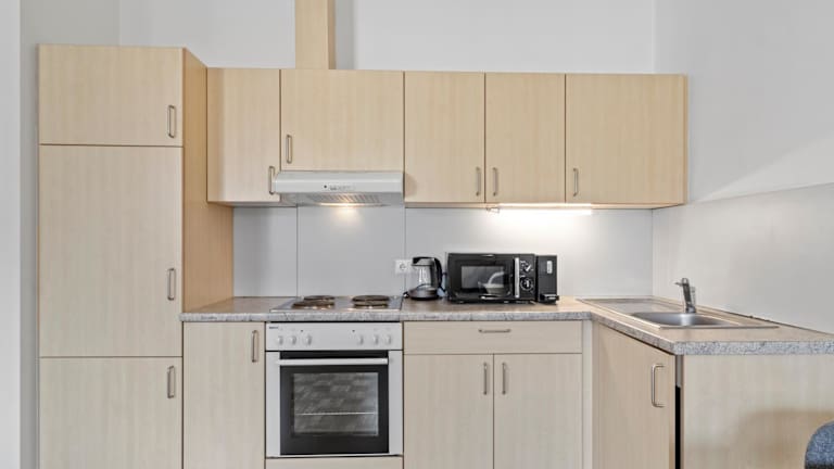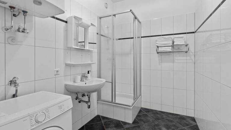Die Ferienwohnung verfügt über 1 Schlafzimmer, eine voll ausgestattete Küche mit Kühlschrank und Geschirrspüler, sowie einen Flachbild-TV und einen gemütlichen Sitzbereich. Das Badezimmer ist mit einer Dusche ausgestattet. Handtücher und Bettwäsche werden zur Verfügung gestellt.