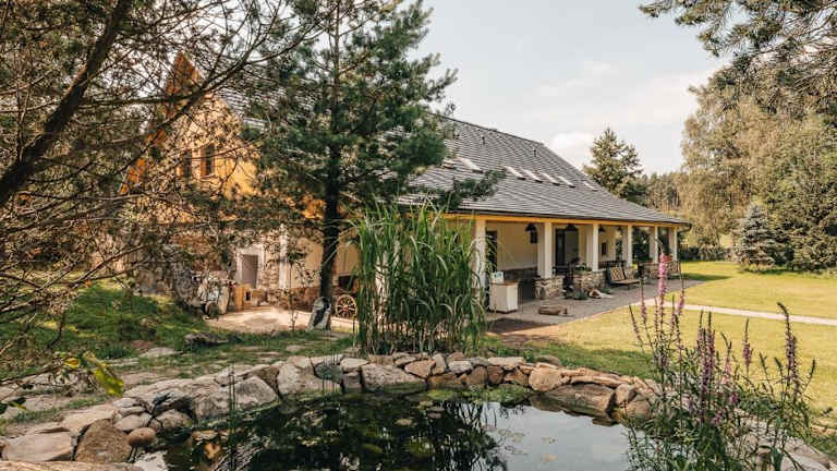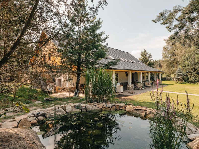 Das Hotel Farma Mračov in Kadov ist der ideale Ort für einen erholsamen Aufenthalt inmitten der Natur. Mit kostenfreiem WLAN, einem Garten und einer Terrasse bietet das Hotel seinen Gästen eine komfortable Unterkunft mit Zugang zu einer Sauna. Die klimatisierten Zimmer sind mit einer eigenen Küche ausgestattet, die alles bietet, was man für einen angenehmen Aufenthalt benötigt. Die Lage des Hotels ermöglicht es den Gästen, die umliegenden Sehenswürdigkeiten wie den Hrad Zvíkov und den Orlik-Staudamm zu erkunden. Der Flughafen Václav-Havel-Flughafen Prag ist ebenfalls gut erreichbar.