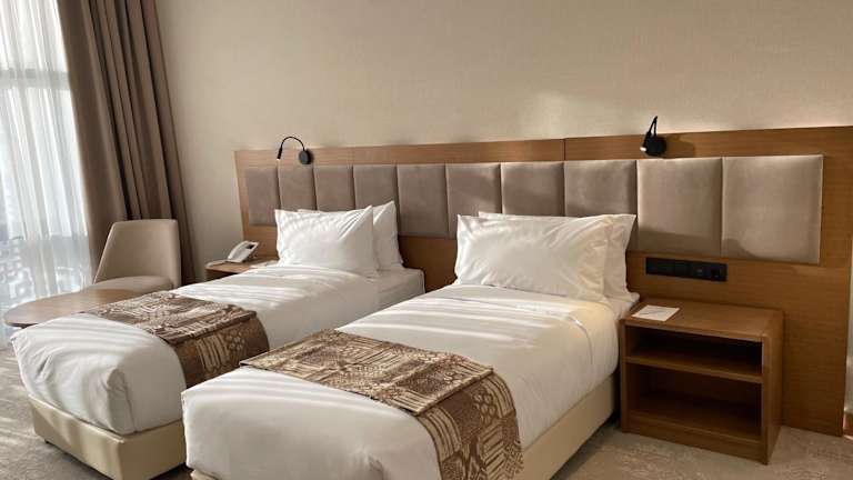 Die klimatisierten Zimmer im Farovon Khiva Hotel sind modern und komfortabel eingerichtet. Jedes Zimmer verfügt über einen Schreibtisch, einen Balkon mit Blick auf die Stadt, ein eigenes Badezimmer, einen Flachbild-TV, Bettwäsche und Handtücher. Ein Kühlschrank ist ebenfalls in jedem Zimmer vorhanden.