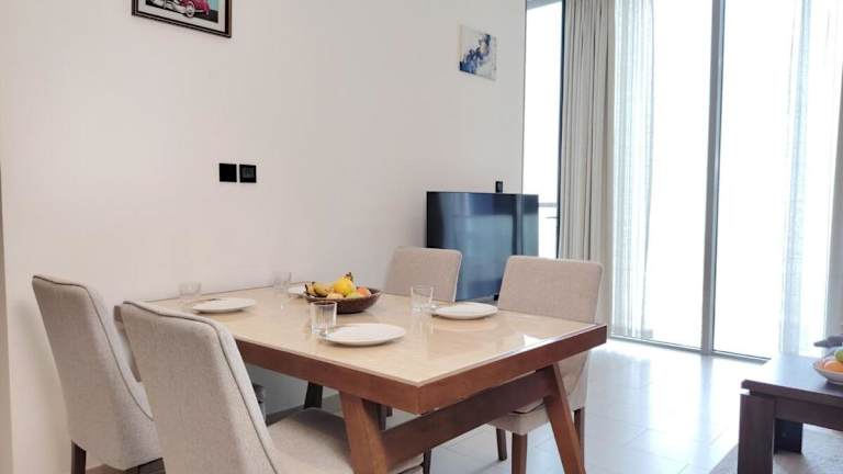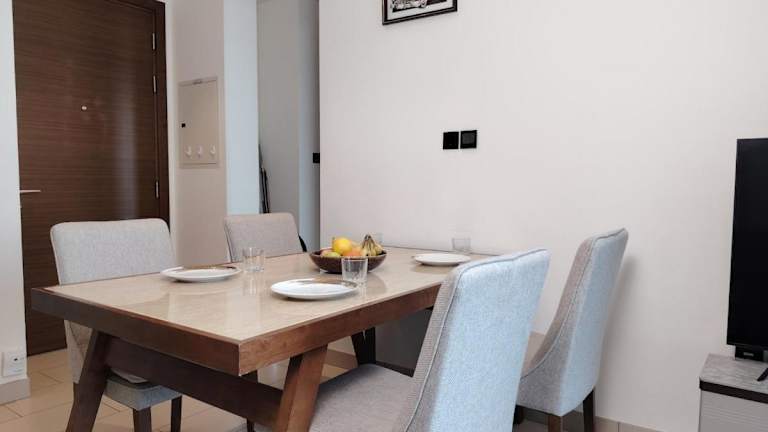 Die Ferienwohnung bietet eine moderne und gemütliche Ausstattung mit einem Balkon und kostenlosem WLAN. Sie ist auf einen Aufenthalt in der Stadt ausgelegt und eignet sich sowohl für Einzelreisende als auch für Paare. Die Unterkunft ist Nichtraucherbereich und liegt in einer ruhigen Lage, die dennoch die Nähe zu den Hauptattraktionen Dubais gewährleistet. Die Nutzung eines Außenpools und der Grillmöglichkeiten ist gegeben. Außerdem ist die Unterkunft mit 24-Stunden-Sicherheitspersonal ausgestattet.