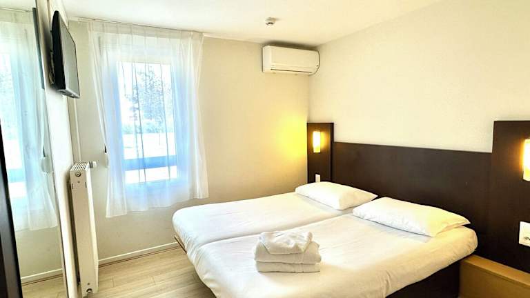 Das Hotel befindet sich im Parc D'activités in Reims-Taissy, etwa 6,1 km vom Automobilmuseum Reims Champagne und von der Gartenstadt Chemin-Vert entfernt. Die Villa Demoiselle ist in einer Entfernung von 5,3 km erreichbar.