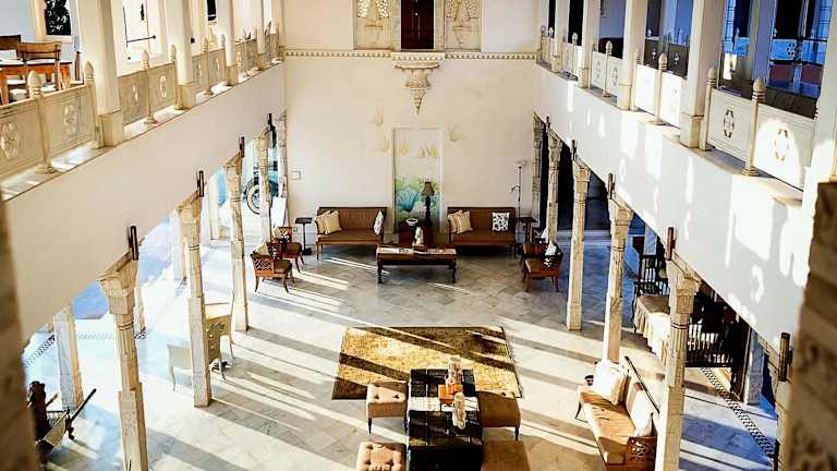 Im Restaurant Baradari können Sie regionale und indische Spezialitäten zum Mittag- und Abendessen genießen. Die Bar Amritam bietet eine Auswahl an Cocktails und internationalen Weinen. Ein besonderes Highlight ist der Nachmittagstee im Innenhof des Janana, von dem aus Sie einen herrlichen Blick auf den Sonnenuntergang haben.