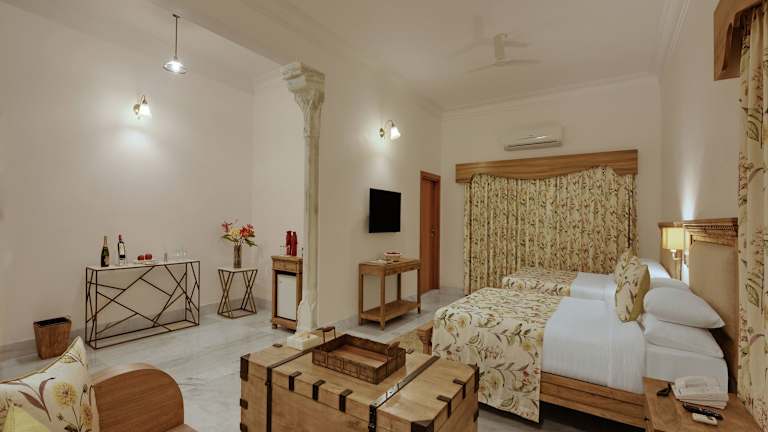 Die Zimmer im Fateh Garh Resort by Fateh Collection sind geräumig und bieten große Fenster mit malerischem Ausblick und viel Tageslicht. Zur Ausstattung gehören Kabel-TV, ein Safe sowie Kaffee- und Teezubereitungsmöglichkeiten. Das Badezimmer verfügt über eine Badewanne mit Dusche.