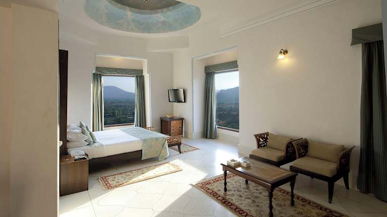 Das Fateh Garh Resort by Fateh Collection liegt nur 7 km vom Stadtzentrum von Udaipur entfernt und bietet eine ruhige Lage mit herrlichem Blick auf die umliegende Natur. Vom Flughafen Maharana Pratap trennen Sie etwa 30 km. Die Umgebung lädt zu geführten Touren durch das ländliche Udaipur ein, sei es mit dem Jeep, zu Pferd oder zu Fuß.