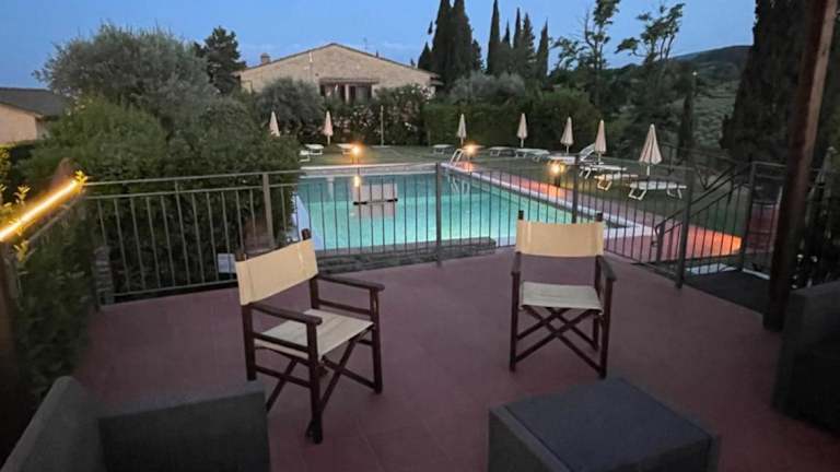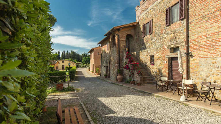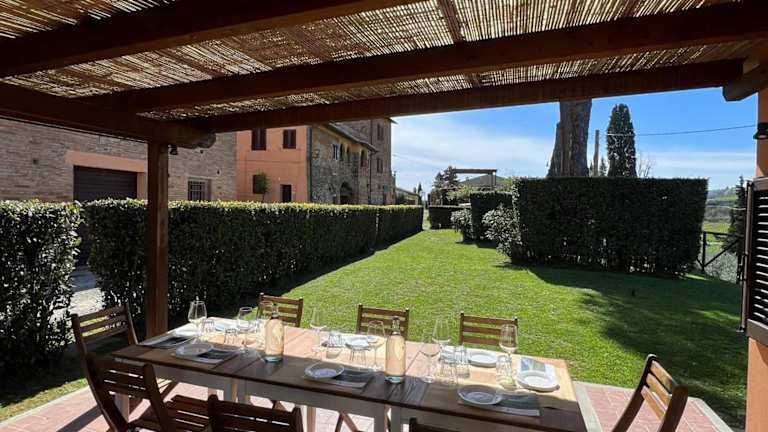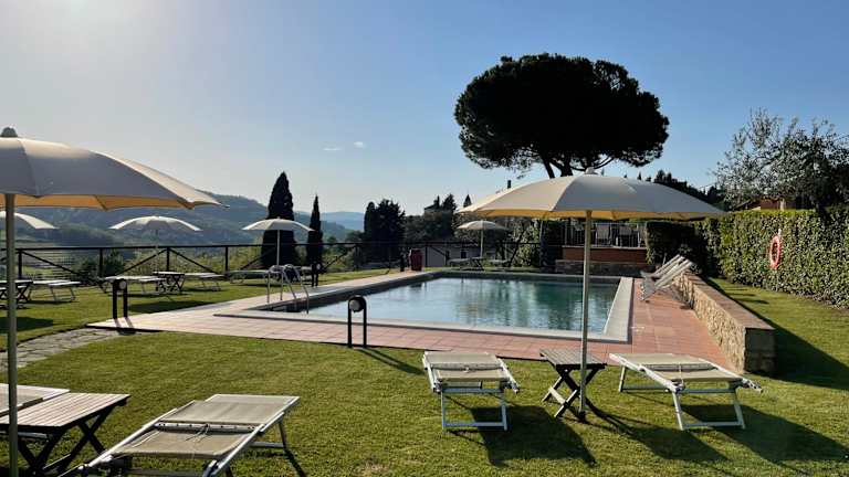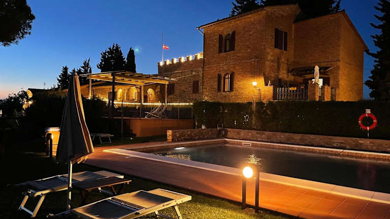 Die Fattoria Di Pancole liegt auf einer Höhe von 300 m und bietet einen herrlichen Panoramablick auf die Türme von San Gimignano. Der Bauernhof ist von eigenen Weinbergen und Olivenhainen umgeben und liegt lediglich 5 Fahrminuten von der Hügelstadt San Gimignano entfernt. Die Erreichbarkeit erfolgt am besten mit dem eigenen Fahrzeug, da die Unterkunft nicht mit öffentlichen Verkehrsmitteln erreichbar ist.