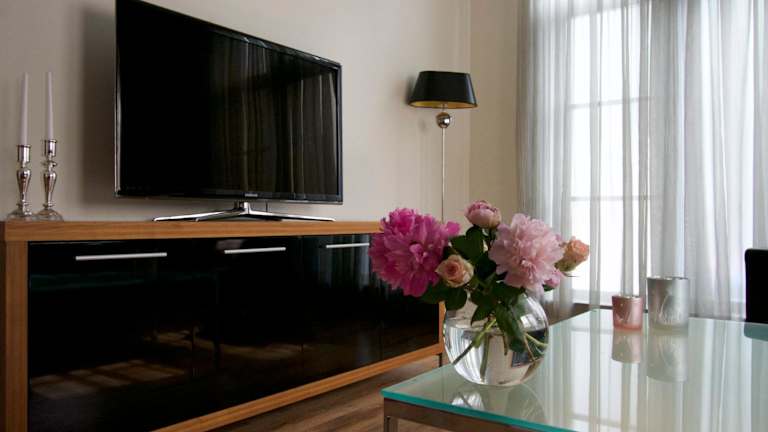 Die Ferienwohnung verfügt über ein gemütliches Schlafzimmer, eine gut ausgestattete Küche mit Kühlschrank und Backofen sowie ein Badezimmer mit Dusche und Haartrockner. Handtücher und Bettwäsche werden gestellt, so dass Sie sich wie zu Hause fühlen können. Der Flachbild-TV und das kostenfreie WLAN sorgen für Unterhaltung und Komfort während Ihres Aufenthalts.