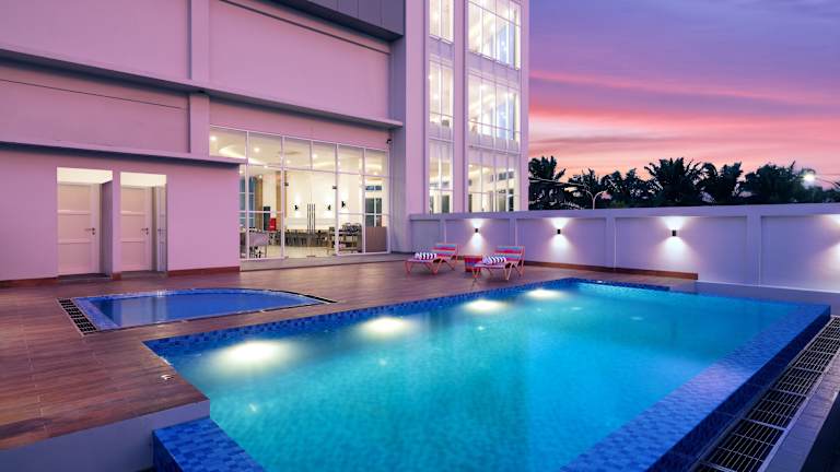 Im favehotel Kediri haben Gäste die Möglichkeit, im Fitnessraum zu trainieren oder im Aussenpool zu schwimmen. Das Planschbecken sorgt dafür, dass auch die Kinder ihren Spass haben. Auf der Terrasse können die Gäste die schöne Witterung geniessen.