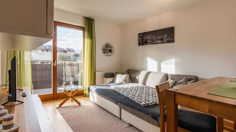 Die Ferienwohnung verfügt über einen Balkon mit Bergblick, ein Schlafzimmer, ein Wohnzimmer und eine gut ausgestattete Küche. Zudem beinhaltet die Unterkunft 1 Badezimmer mit Bidet und Dusche. Handtücher und Bettwäsche sind ebenfalls vorhanden.