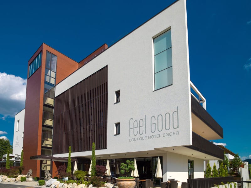 Es soll Ihnen einfach gut gehen. Kurzum: feel good. Fühlen Sie sich wohl in unserem neu errichteten vier Sterne Boutique Hotel Egger in Krumpendorf am Wörthersee. Lassen Sie sich verwöhnen und liebevoll umsorgen. In ungezwungener Atmosphäre, weit weg vom Alltag. Suite für Suite. Wir wollen Ihnen den Platz und Raum geben, den Sie brauchen, um sich zu erholen. Deshalb wohnen Sie bei uns ausschließlich in geräumigen Suiten. Einzigartig: die hochwertige Ausstattung und das moderne, unaufdringliche Design. Wörthersee, der Legendäre. Riviera-Feeling vom Feinsten. Mildes Klima, unzählige Sonnenstunden, mediterranes Flair und unser Boutique Hotel Egger als Refugium der Sinne mit einem atemberaubenden Blick über den weiten, tiefblauen Wörthersee. Genuss pur in unserem Wellness. Im Wellnessbereich erwarten Sie vier verschiedene Saunen inklusive Fitnessraum und Outdoor-Pool. Krumpendorf, 365 Tage. Unser Boutique Hotel Egger liegt am wunderschönen Nordufer des Wörthersees. Wo Urlaub kein eindimensionales Ereignis ist. Deshalb haben wir das ganze Jahr über für Sie geöffnet. Im beschaulichen, familiären Badeort Krumpendorf, nur 8 Minuten Fahrzeit von Klagenfurt entfernt.