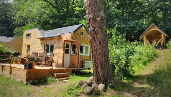 Wir wollen Sie herzlich einladen, ein außergewöhnliches Erlebnis in der Ferienregion der Mecklenburgischen Seenplatte zu erleben und inmitten der Natur die Verbindung zwischen Erholung und Nachhaltigkeit zu spüren. Bleiben Sie während Ihres Aufenthalts online in Verbindung mit Ihren Freunden. Wir bieten dafür eine reichhaltige Entertainment-Ausstattung an sowie kostenfreies WLAN. Bei uns darf Ihr Vierbeiner Sie gern begleiten und die Anreise mit einem Elektro-Auto ist dank Lademöglichkeit am Haus auch kein Problem. Bettwäsche, Handtücher und Endreinigung sind selbstverständlich inklusive. Erkunden Sie die Umgebung bei einer Wanderung durch die angrenzenden Wälder, machen Sie den Fang des Lebens beim Angeln auf dem See. Auch Wasserliebhaber kommen hier auf ihre Kosten. Optional bieten wir Ihnen 2 Trekkingsfahrräder zum Ausleihen an. Der Campingplatz bietet neben einen Spielplatz für die Kleinen auch Minigolf und gutes Essen an. Selbstverständlich bieten wir Ihnen ein bequemen und kontaktlosen Check-in vor Ort. Sie melden sich lediglich an der Rezeption des Campingplatzes an. Den Schlüssel zu Ihrer Unterkunft erhalten Sie direkt am Ferienhaus im Schlüsseltresor, deren PIN Sie vorab per E-Mail erhalten. Ihr PKW können Sie direkt am Ferienhaus parken. Wir freuen uns Sie als Gast in unserem Tiny House Willkommen zu heißen!
