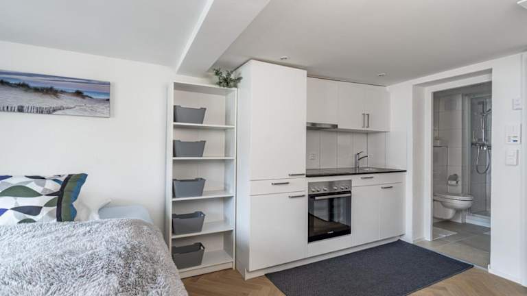 Die Wohneinheiten verfügen über eine voll ausgestattete Küche mit Kühlschrank, Geschirrspüler, Ofen, Herdplatte, Kaffeemaschine und Wasserkocher, was die Selbstversorgung ermöglicht. Kostenlose Pflegeprodukte sind im eigenen Badezimmer vorhanden.
