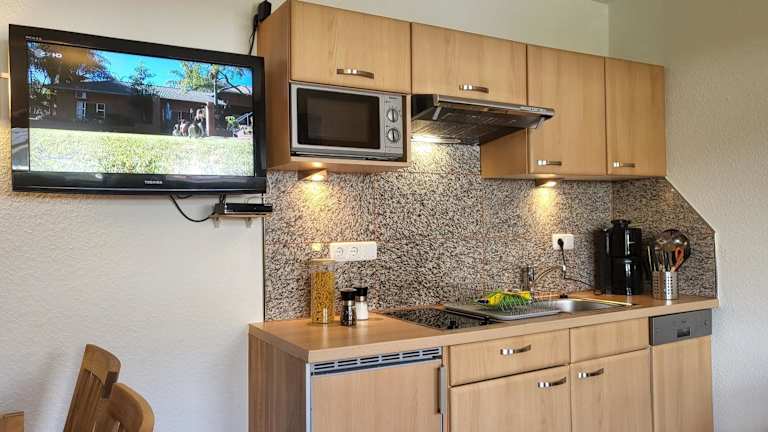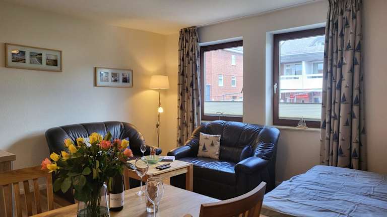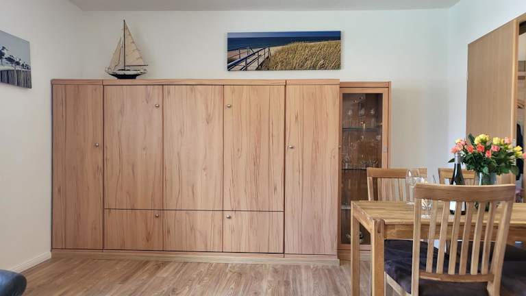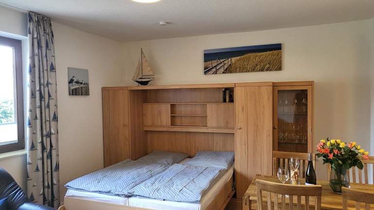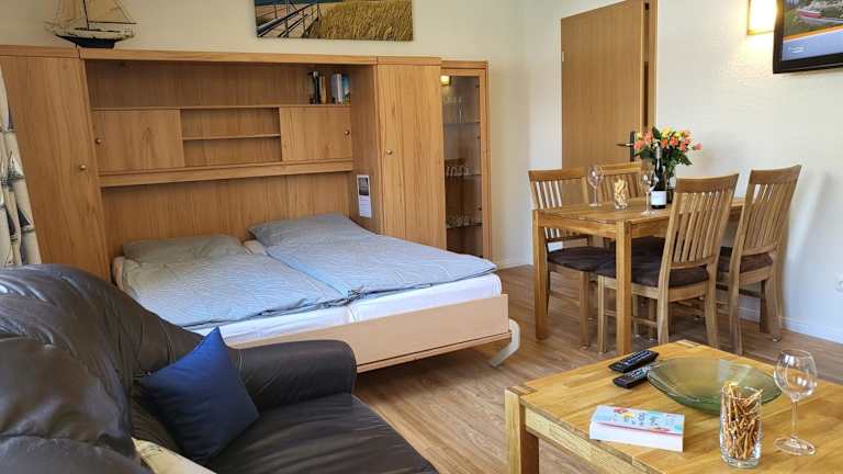 Die Ferienwohnung umfasst 1 Schlafzimmer, ein Wohnzimmer sowie eine voll ausgestattete Küche mit Kühlschrank und Geschirrspüler. Zur Unterhaltung stehen ein TV und ein CD-Player zur Verfügung. Die Ausstattung sorgt für Bequemlichkeit während des Aufenthalts.