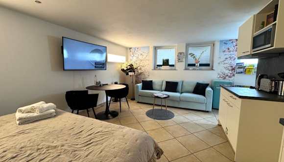 Die Unterkunft umfasst ein Schlafzimmer, eine voll ausgestattete Küche mit Kühlschrank und Geschirrspüler sowie ein Badezimmer mit Dusche und Haartrockner. Handtücher und Bettwäsche werden bereitgestellt. Die Wohnung bietet kostenfreies WLAN und einen Flachbild-TV.