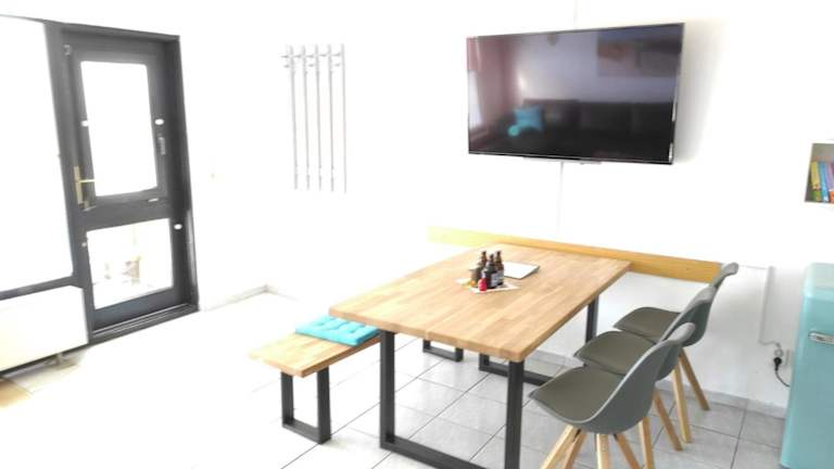 Die Ferienwohnung bietet Platz mit 3 Schlafzimmern und einem gemütlichen Wohnzimmer. Die gut ausgestattete Küchenzeile beinhaltet einen Kühlschrank und einen Geschirrspüler. Zudem gibt es ein Badezimmer mit Dusche und einen Flachbild-TV für Unterhaltung. Der Blick auf den Garten sorgt für ein angenehmes Ambiente.